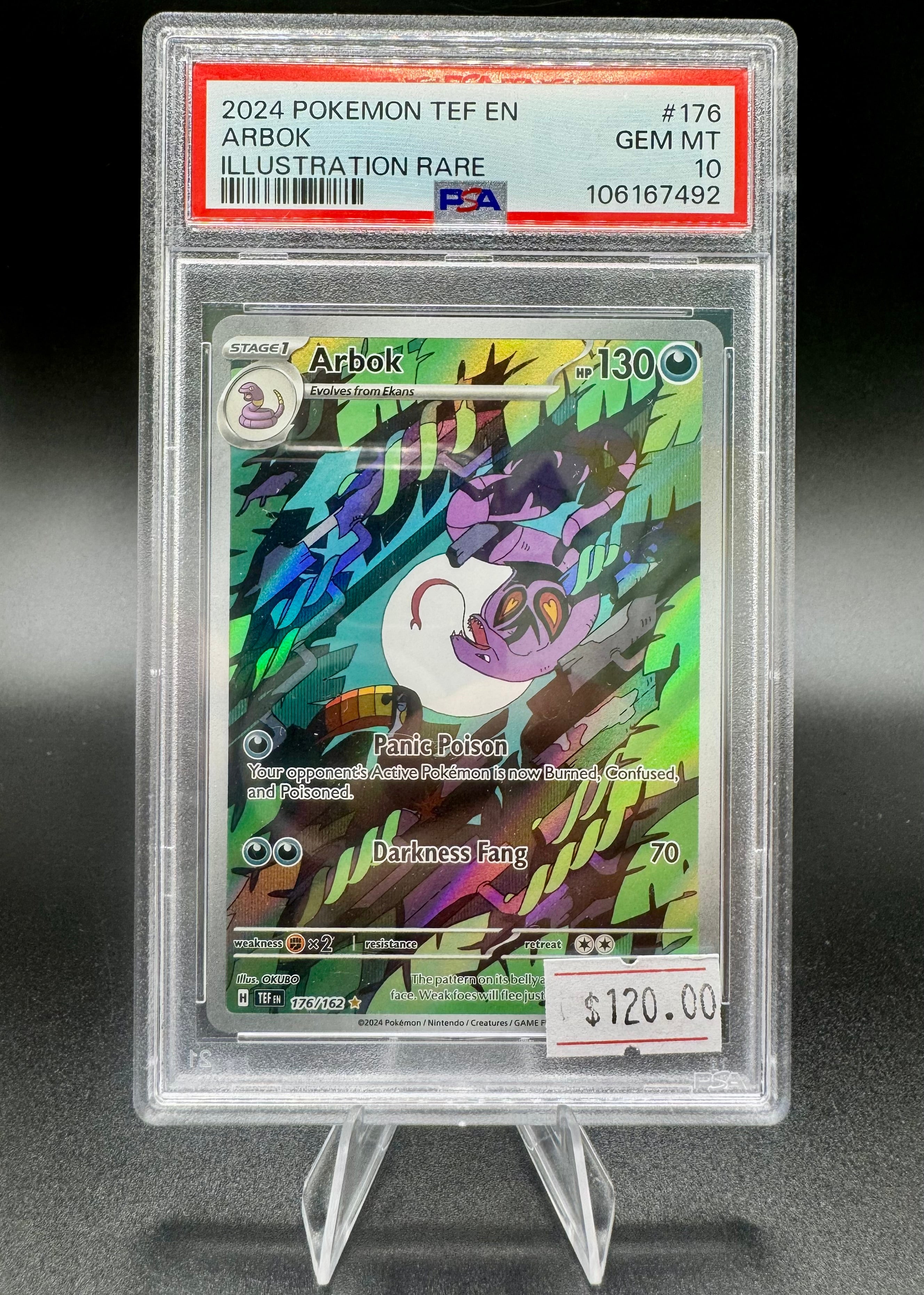 This Arbok card, numbered 176/162 from the Sv05 Temporal Forces set, is a rare illustration graded PSA 10. Its flawless...
