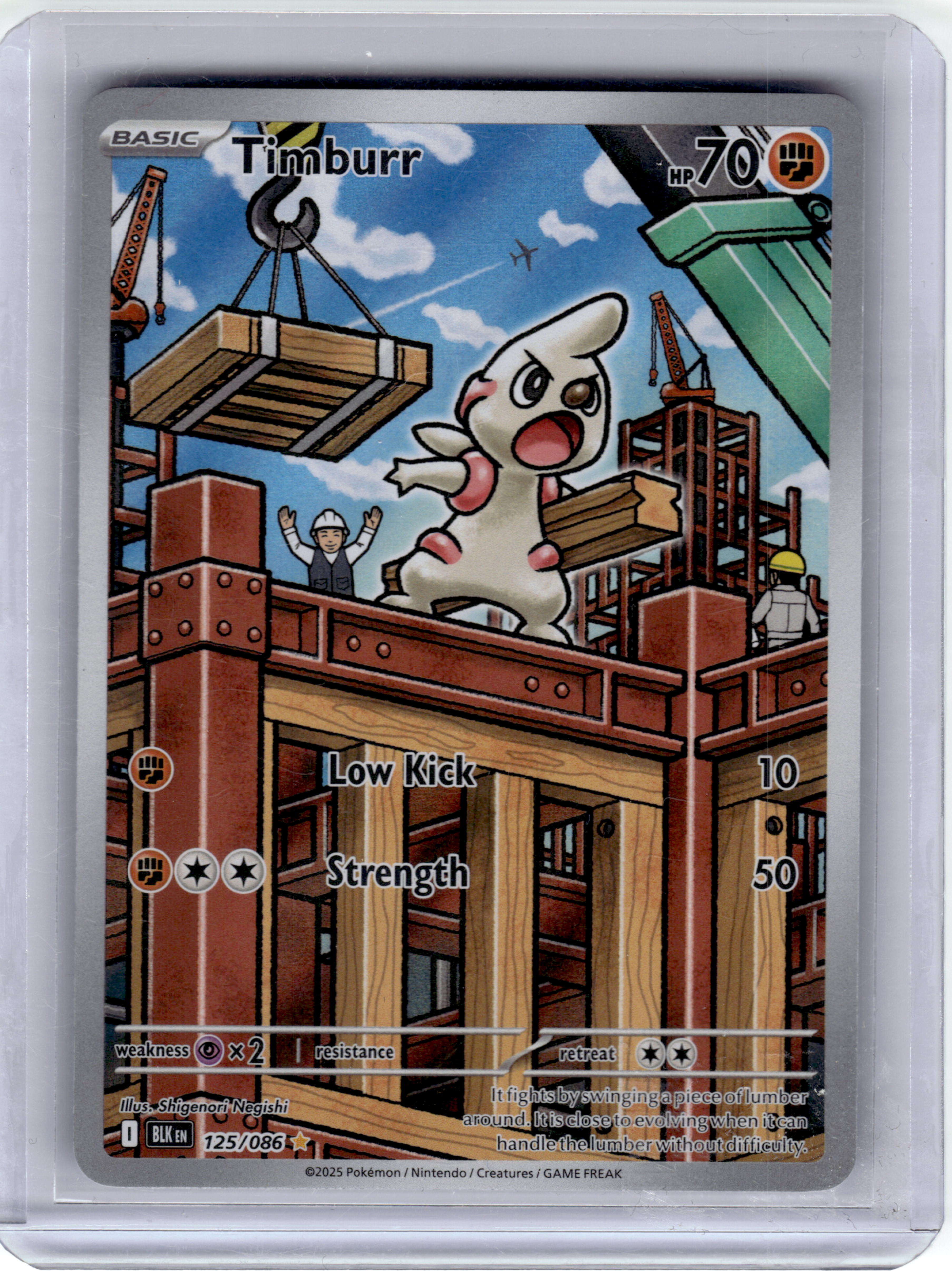 This is a nice example of a SV: Black Bolt #125/086 Timburr Other important information about this card:In 2025 Timburr...