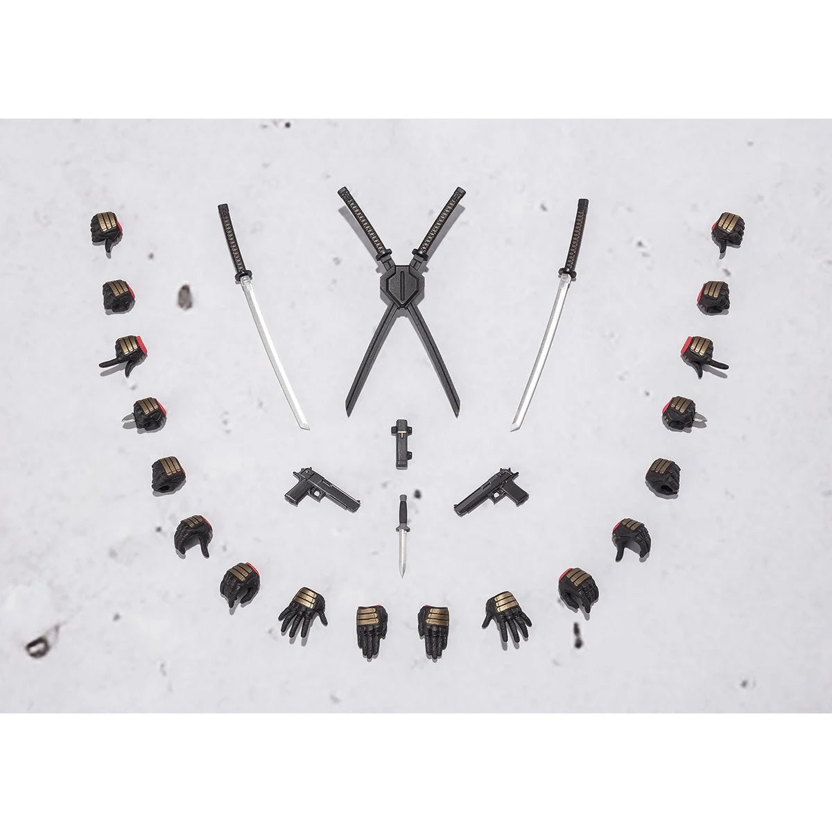 Deadpool from the movie Deadpool and Wolverine joins S.H.Figuarts! This Deadpool and Wolverine Deadpool S.H.Figuarts Action Figure measures approximately 6-inches tall. Deadpool appears with a suit model and coloring updated to the design of the movie. A wide variety of optional parts are included, allowing you to recreate Deadpool's character as you wish, including his brilliant actions and comical facial expressions. "Headpool" that appears in the film is also included! Wade Wilson includes 9x pairs of replacement hand parts, 3x pairs of replacement eye parts, 2x sword, sheath parts, 2x guns, 2x holsters, knife, knife case, Headpool, and Headpool support parts. Add him to your collection! Ages 15 and up.